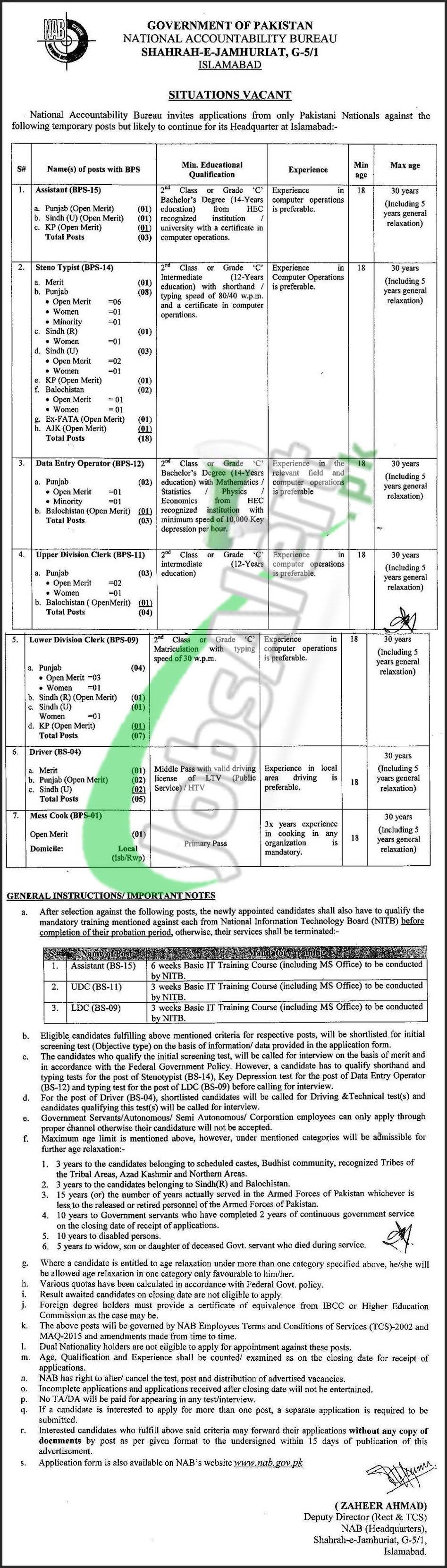 | NAB Jobs in National Accountability Bureau latest Jobs march 2021 download application form |